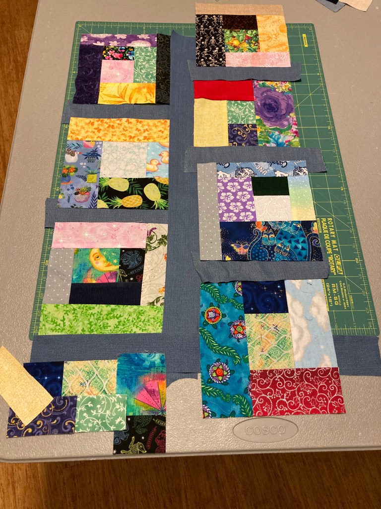 When I laid out all my scraps, I realized that what with all the different bits and pieces to the pattern, maybe I didn’t actually have quite enough denim after all. The first things to go were the patch pockets. They were decorative, but I thought I might want to simplify a bit so the project wouldn’t take as long. Then I decided that using a different, lighter fabric for the inner pieces of the welt pockets might be a good idea, as it would reduce bulk. Even with those changes, though, I probably didn’t have quite enough denim.