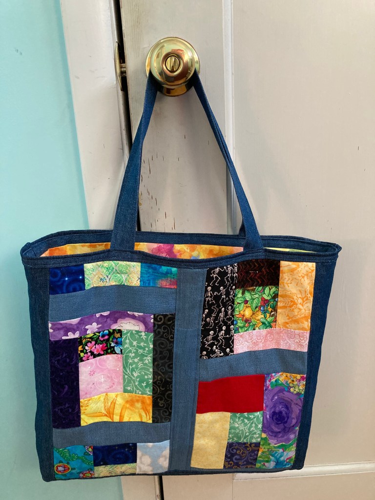 One of the greatest delights of sewing, or indeed of crafts in general, is turning rubbish into something wonderful. I tend to save the usable parts of worn-out clothing, and I had accumulated a small pile of heavy denim from jeans that my husband had worn out. The pile had been sitting there waiting for a use to suggest itself, when I decided I really wanted to make something.