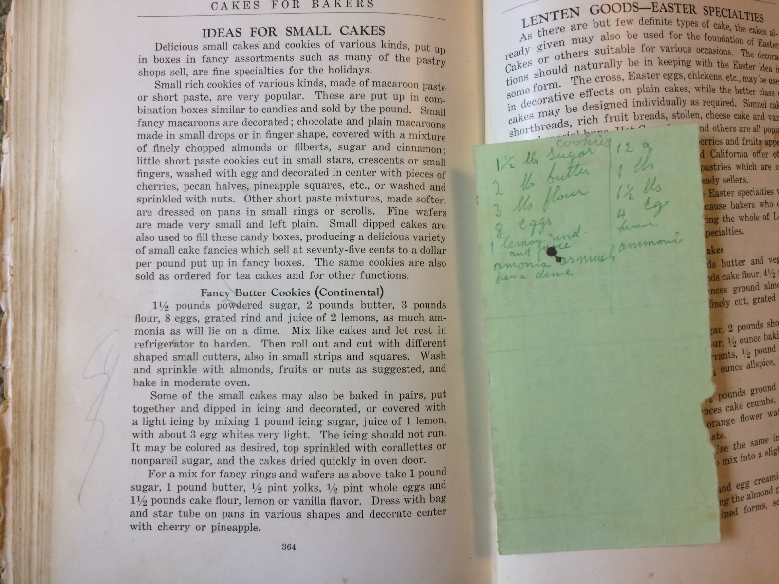 And that’s why I love the Technical Challenge. It’s a test of their overall baking know-how. The more broadly they have experimented in baking and the more they have read about different baked goods, the more likely they are to know something about baking the assigned item. Being practiced in common techniques helps when the recipe leaves out the details. Even being inquisitive in sampling pastry can pay off— if the contestant has eaten the pastry in question, at least they have some idea how it should turn out.Now onward to Cakes For Bakers, a cookbook for the professional baker, copyright 1923. This book belonged to my Grandpere, who was, indeed, a professional baker. The book in interesting for a number of reasons. It’s old and refers to things like “pastry butterine” and whether the damper should be closed while baking. The selection of recipes is unlike my household cookbooks—it includes “Monte Carlos”, “Stork’s Nests”, and various kinds of Zwieback and honey cake, for example. It offers suggestions on pricing, decoration, and display of goods, and discusses the use of ammonium carbonate in leavening cookies.