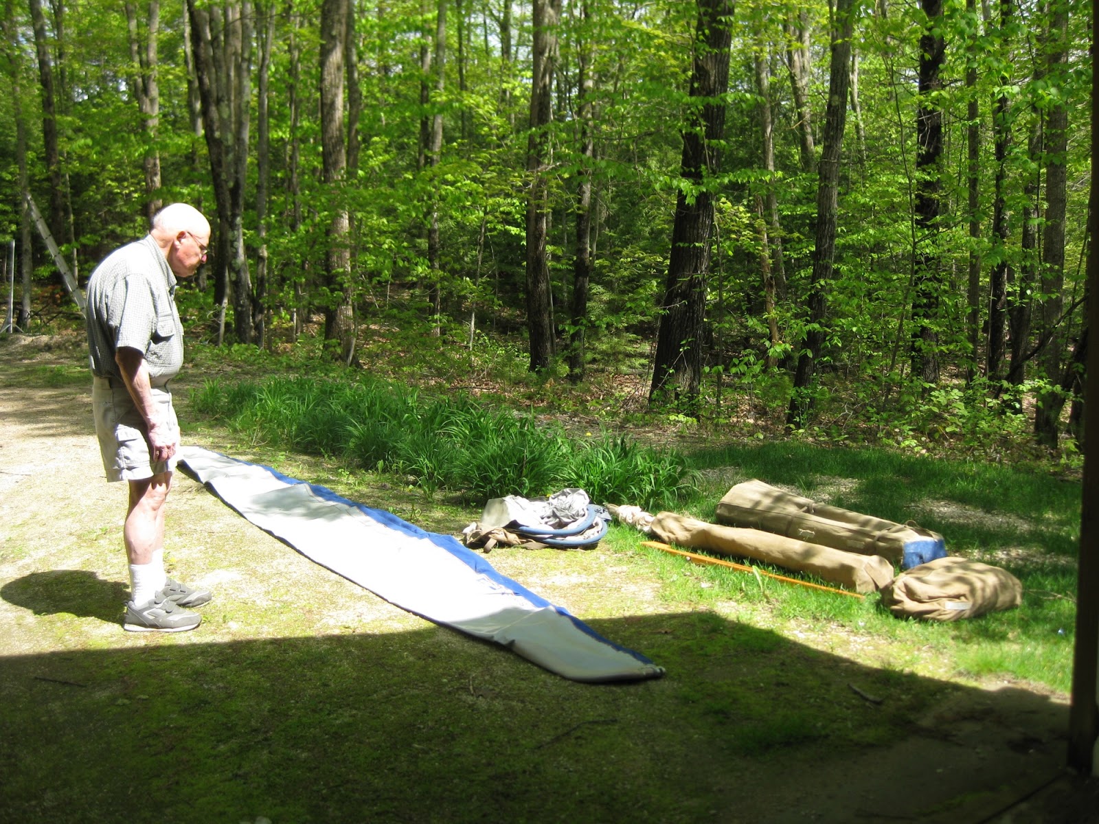 I remember helping him put together the kayak when I was a kid. It came in several heavy canvas bags. Wooden pieces had to be slotted together, poles had to be inserted along the sides, and then the two ends had to be pushed into the rubberized hull before they could be locked together and the seat backs put in place.