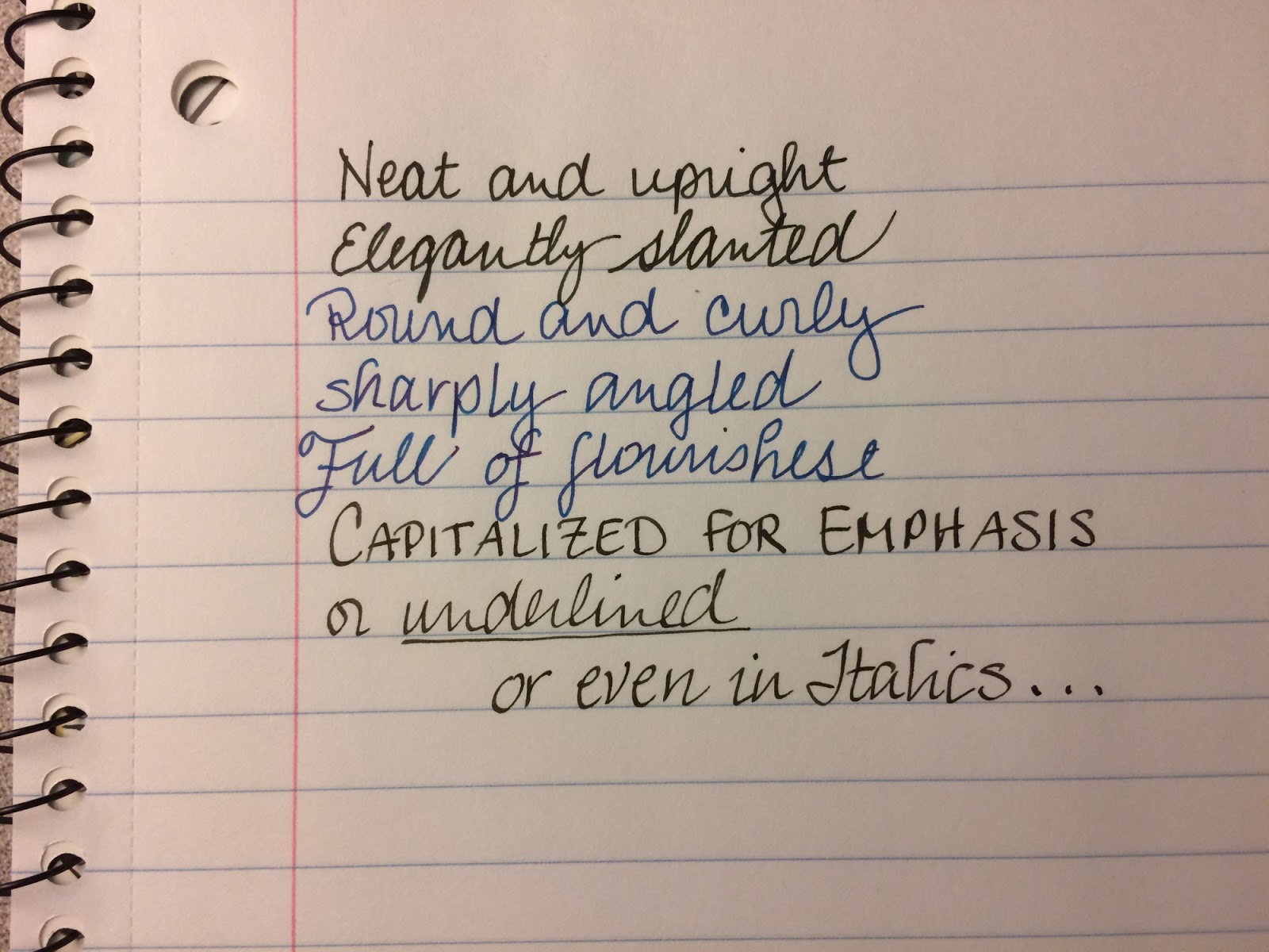 So part of the pleasure of writing is the feel of the pen on the paper. Another is watching the words appear. It helps if you have an interest in handwriting or calligraphy, so that you like to play with their appearance. Neat and upright, or elegantly slanted. Round and curly, or sharply angled, or full of flourishes. CAPITALIZED FOR EMPHASIS, or underlined, or even in italics. But even simple printing has something appealing about it when it fills a notebook page.