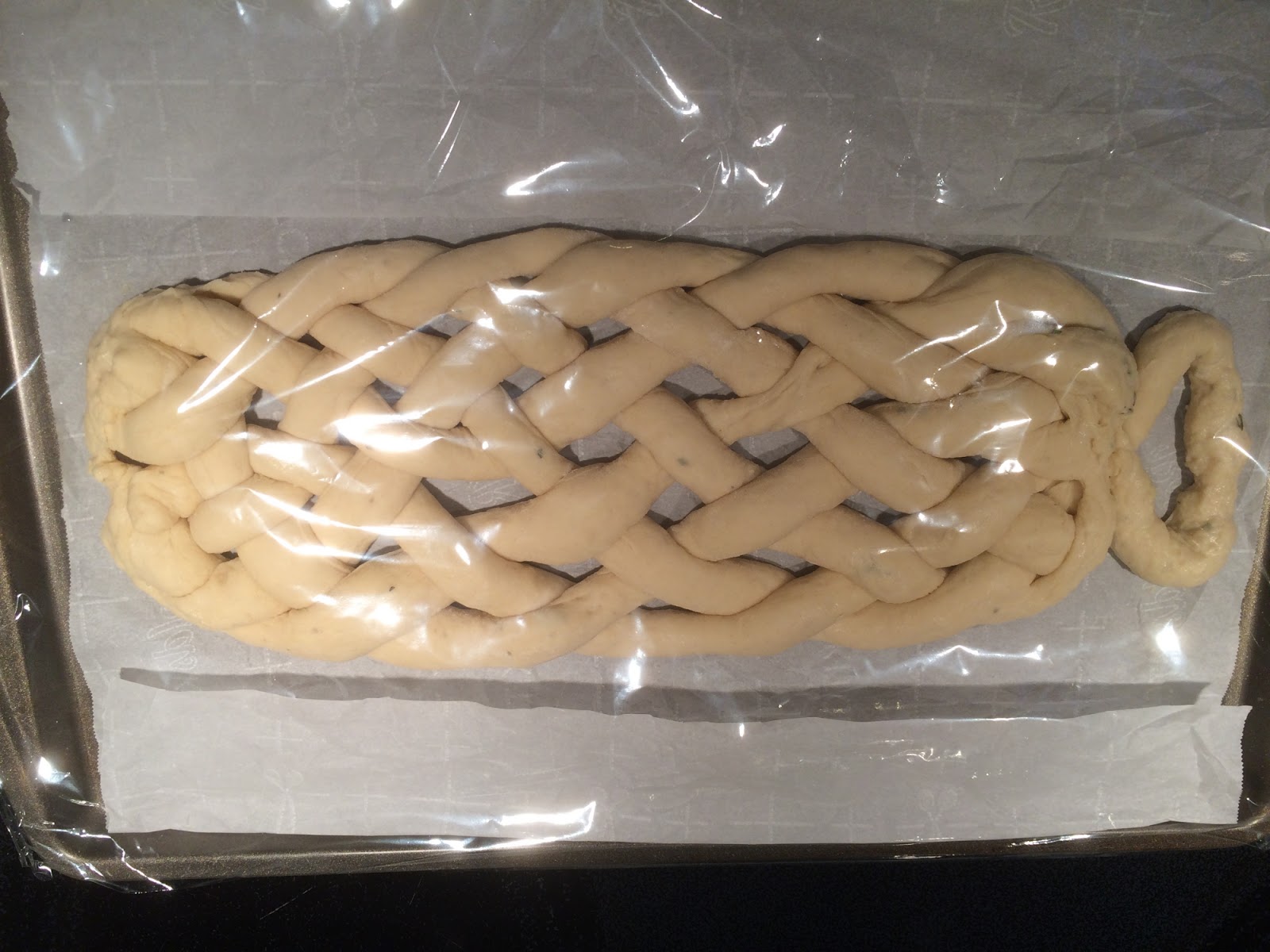 After watching an episode of the Great British Baking Show in which the bakers faced a technical challenge that involved an eight-strand braided bread, I was inspired to try to figure out how to do an eight-strand braid. After watching the Masterclass version, I don’t think my solution is the same as Paul’s. Actually, I like mine better. Here are the photos.