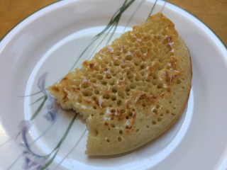 So what did these particular buttered crumpets taste like? Slightly salty. And buttery. It made me think about the appeal of plain bagels grilled in salted butter. Not sweet, but wonderfully buttery and chewy and slightly salty. The texture was different, of course, but the comparison helped me understand why they would be appealing.