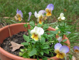 Back in 2007-2010, I was intrigued by violas, those smaller cousins of the pansy. They come in such a variety of colors and patterns (though not quite as many colors as pansies), and their flowers, though smaller than pansies, are more numerous and less liable to flop over.