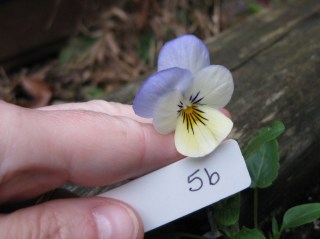 Unfortunately, as I look back at what passes for a Garden Log, I discover that I kept terrible notes. No system. What did “5b” mean? Did I just pick some viola, whether something I bought or a random volunteer (I got quite a few volunteers) and give it a number? Or was “5” its parent? Was I just trying to label the picture for the next year’s seed?