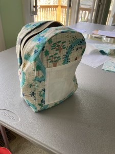 It’s my third post about mini-backpacks (though maybe my fifth actual bag)! that I made in imitation of my favorite purse. One of the difficulties is adding enough stiffness so the bag doesn’t turn into a limp pool of fabric that is hard to open and manipulate.